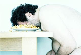 Так называемый "голый ланч" заключается в том, чтобы раздеться перед тем, как что-нибудь съесть. В таком виде человек лучше осознает тот факт, что переедает, и чувство неловкости заставляет его есть меньше. Если же это не срабатывает, можно усилить эффект, поставив перед собой зеркало в полный рост.
